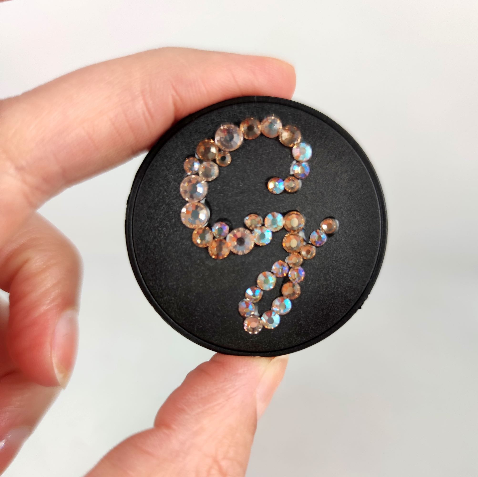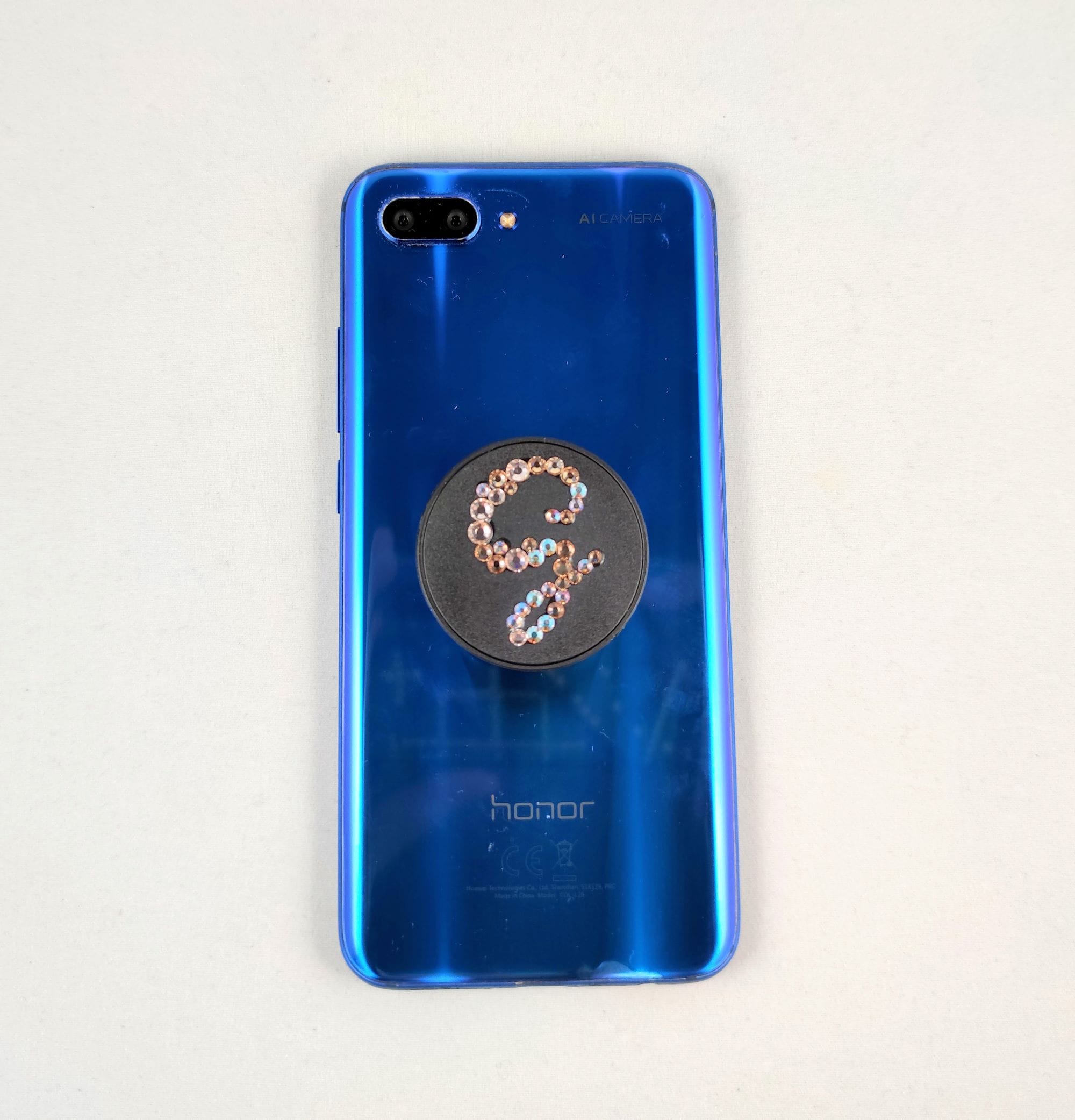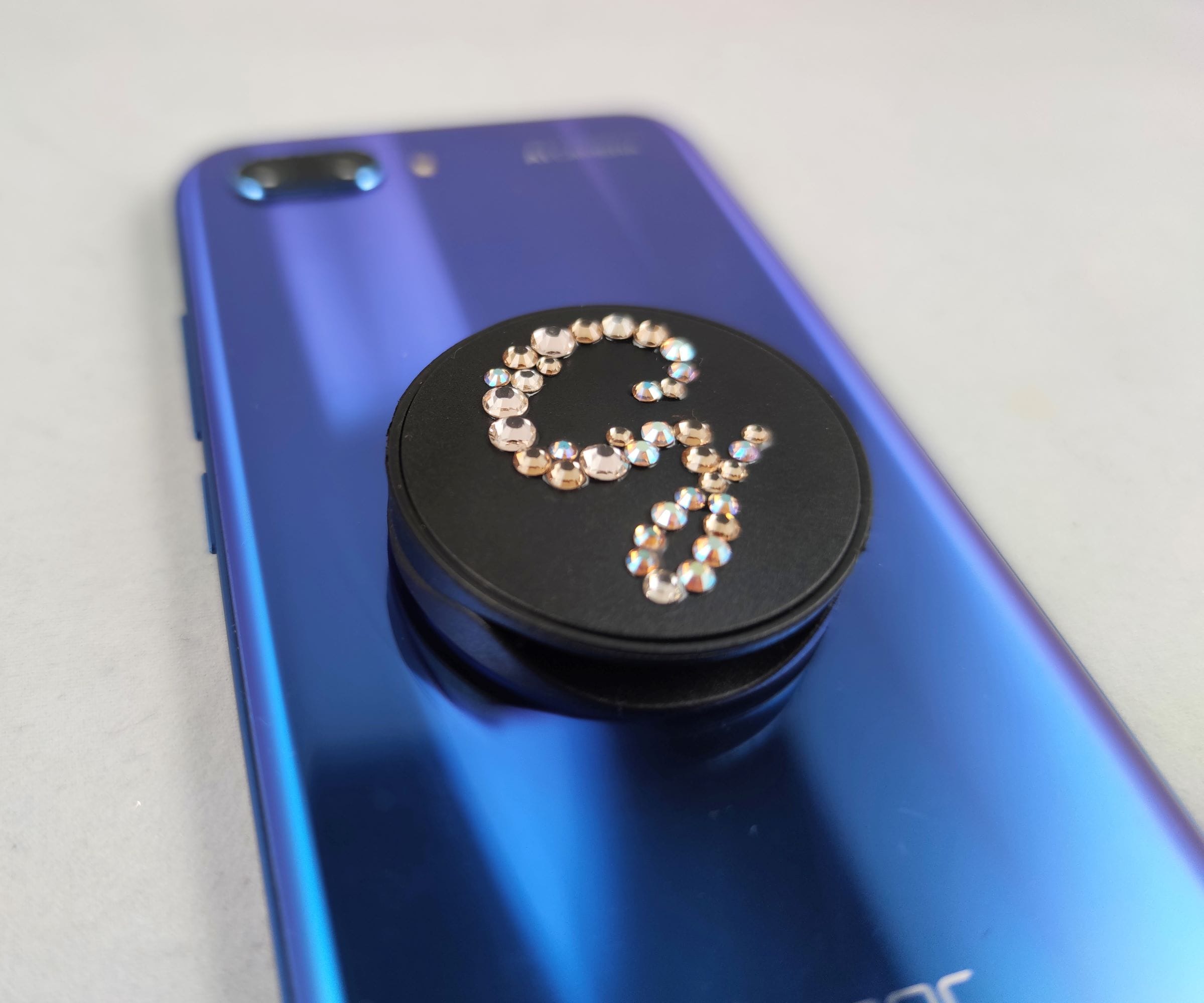 This pop out phone grip is hand-decorated to order, with your initial in your choice of crystal colour.