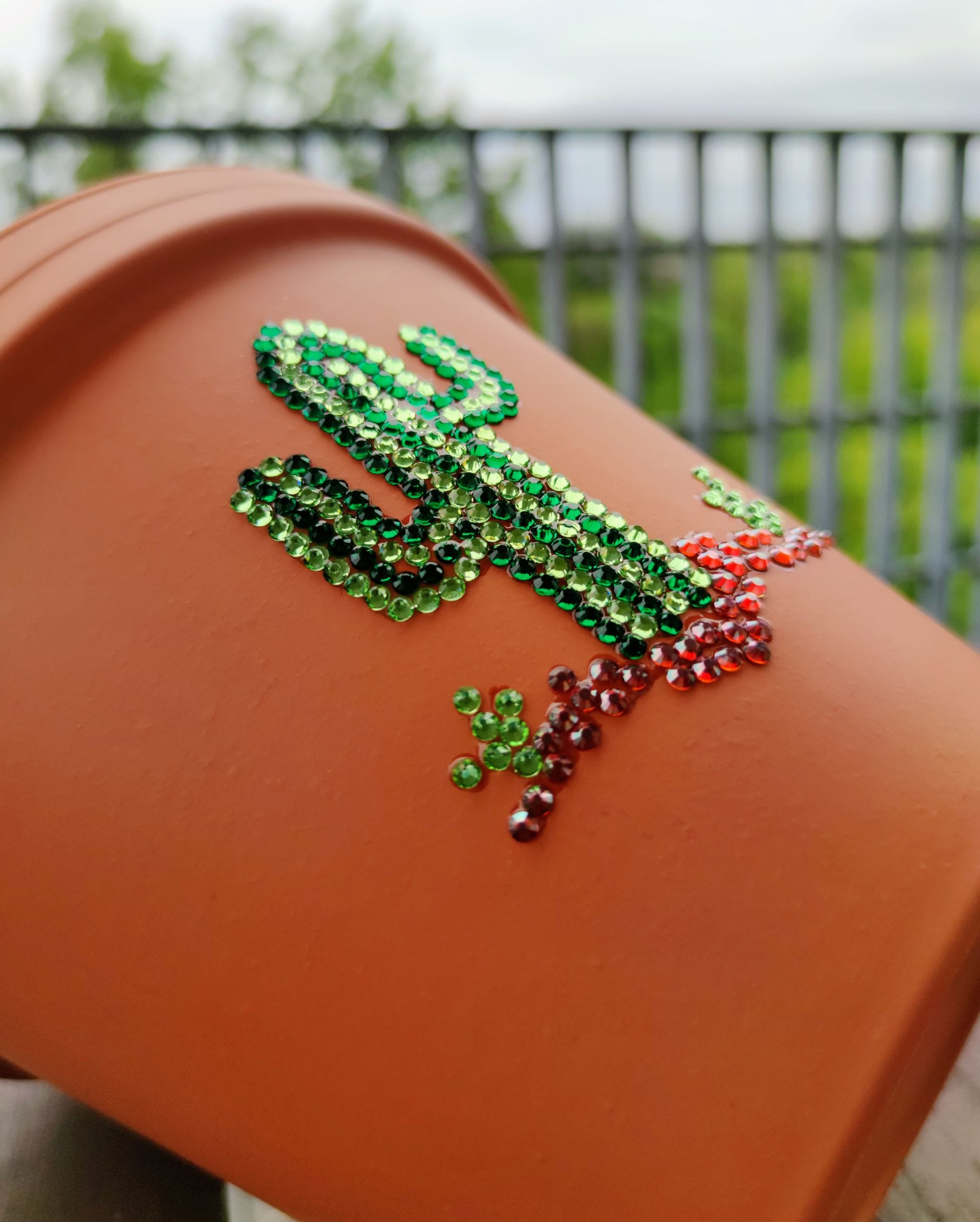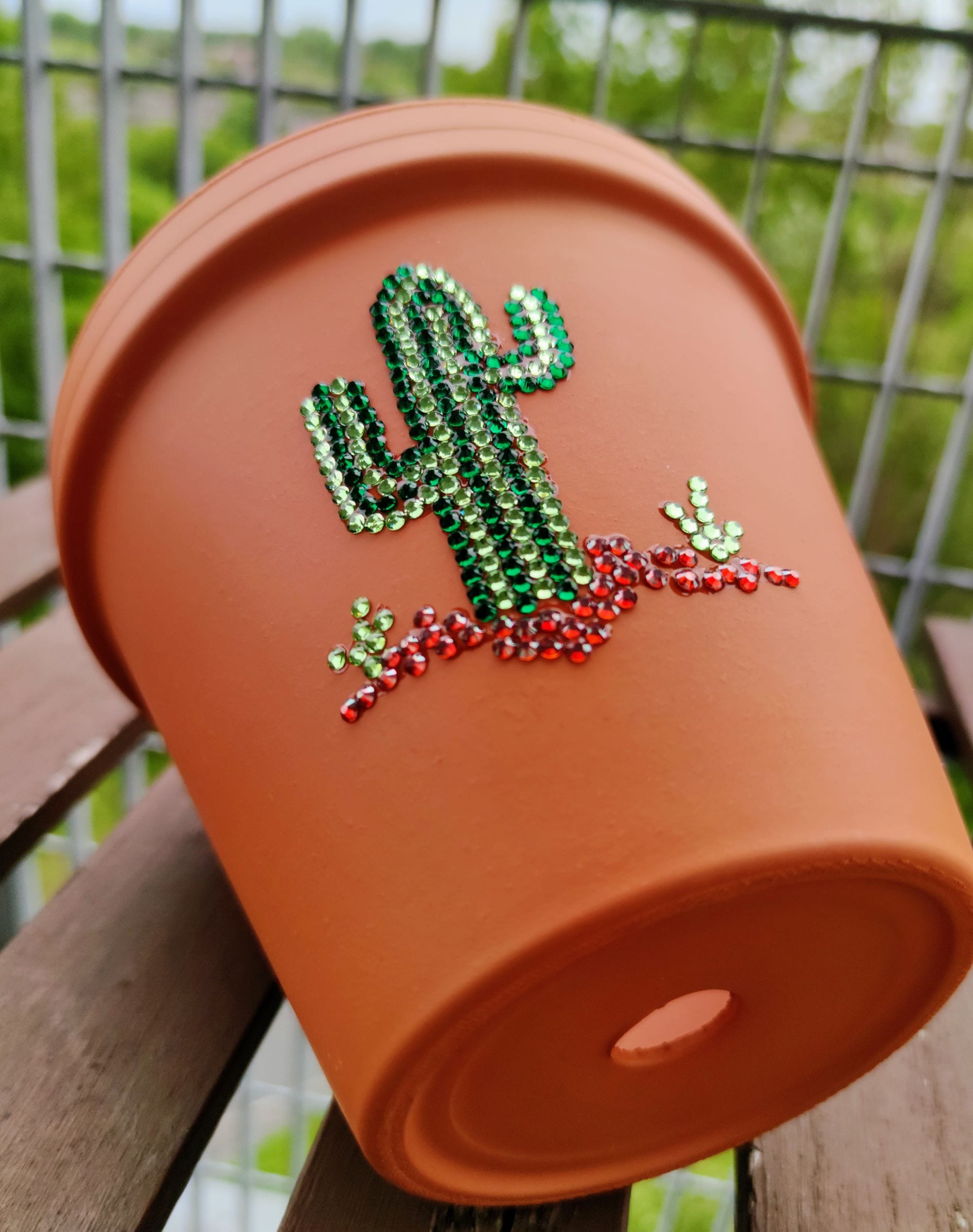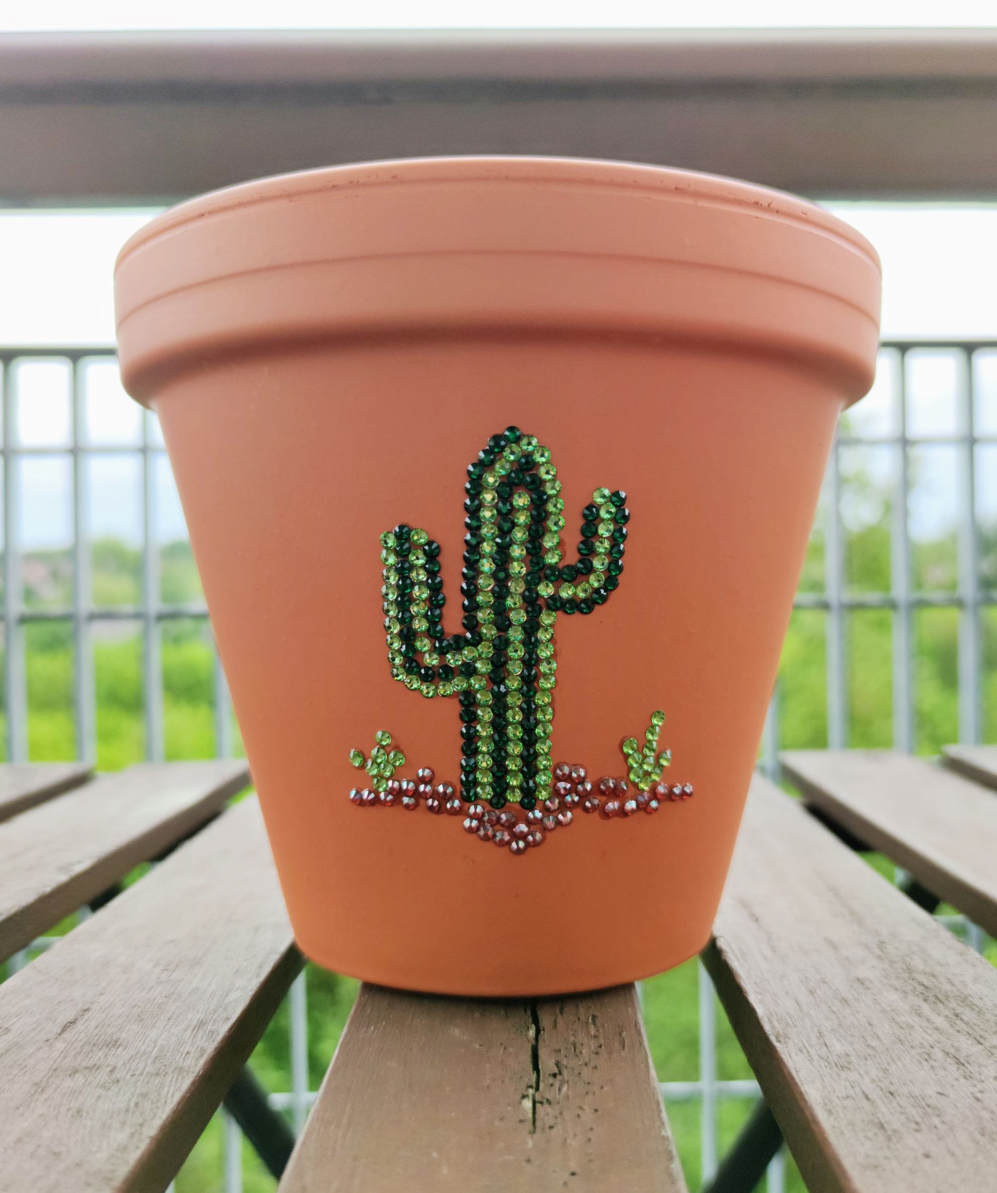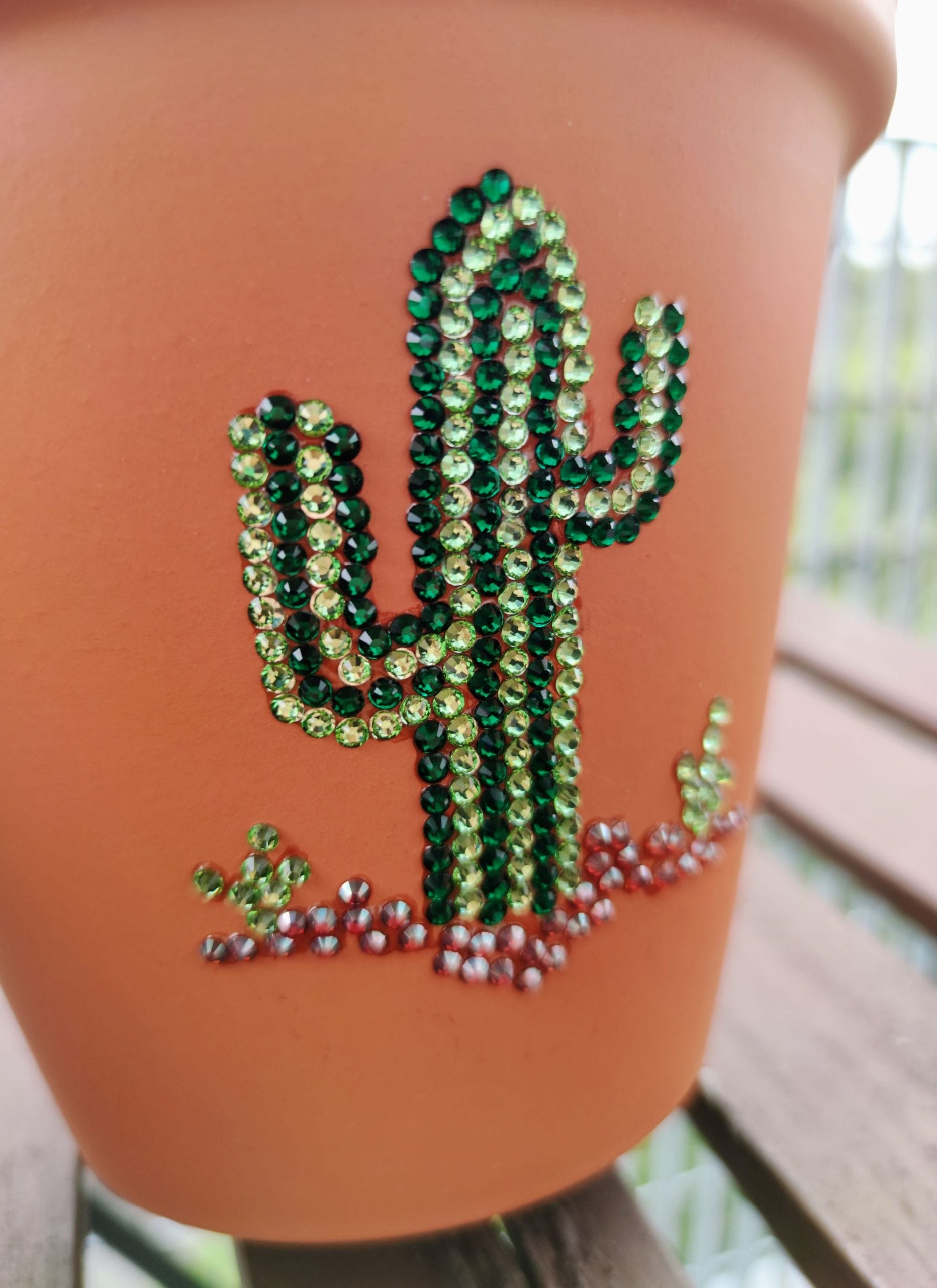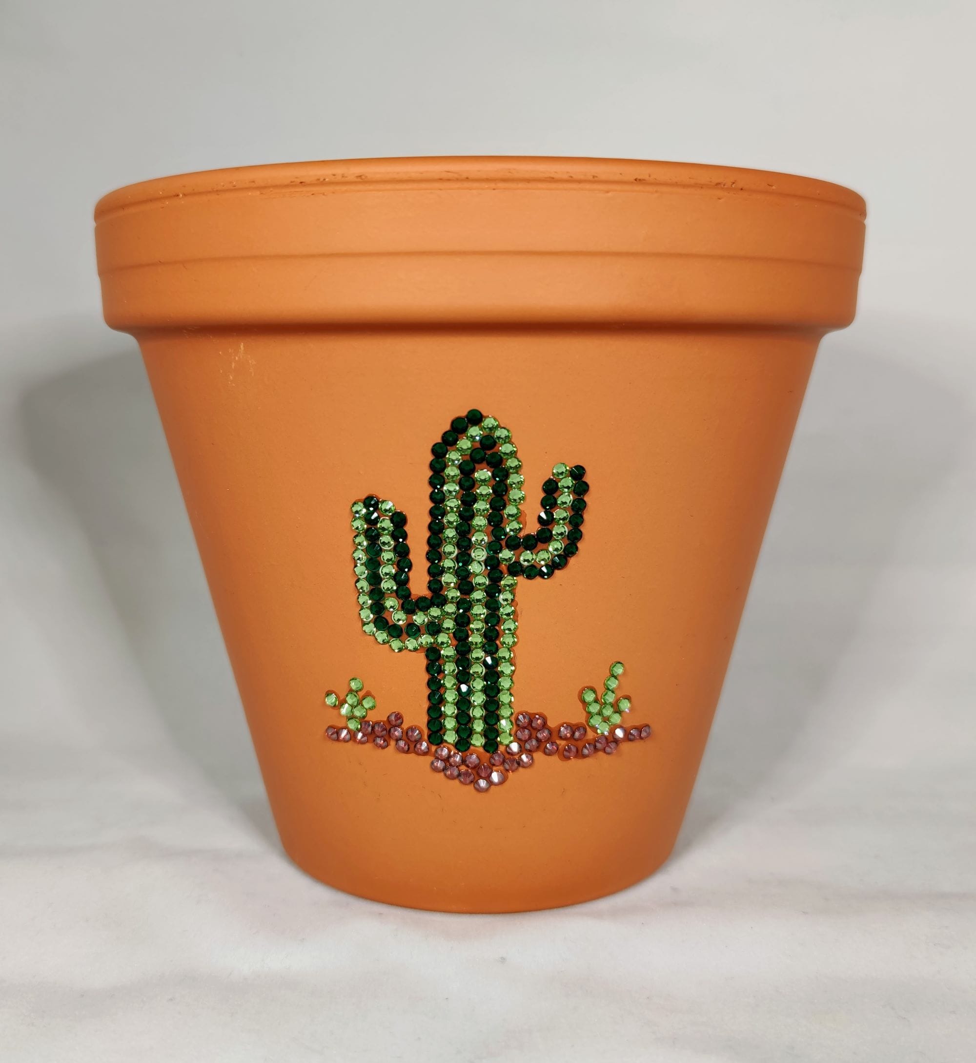 All the fun of a cactus, with none of the spikes! This glittering terracotta plant pot will be a great home for your own cacti.