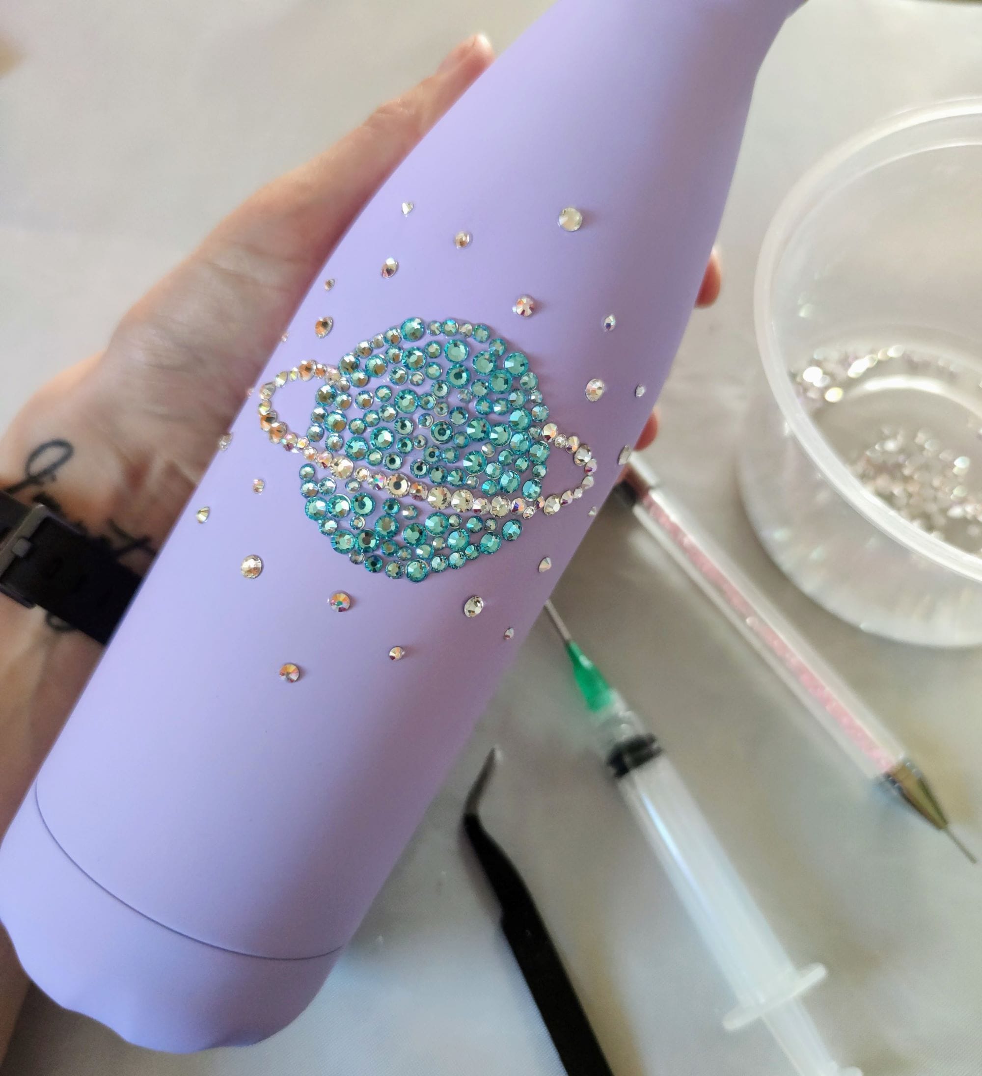 All our products are designed in house and hand decorated with high quality crystal cut rhinestones. Each stone really sparkles beautifully, pictures just don’t do it justice. As all our items are made to order, ensuring you get a truly personal item, they won’t be with you tomorrow! Please be sure to check our current processing time here. Due to the handmade nature of these products, there may be slight variations in design and colour.